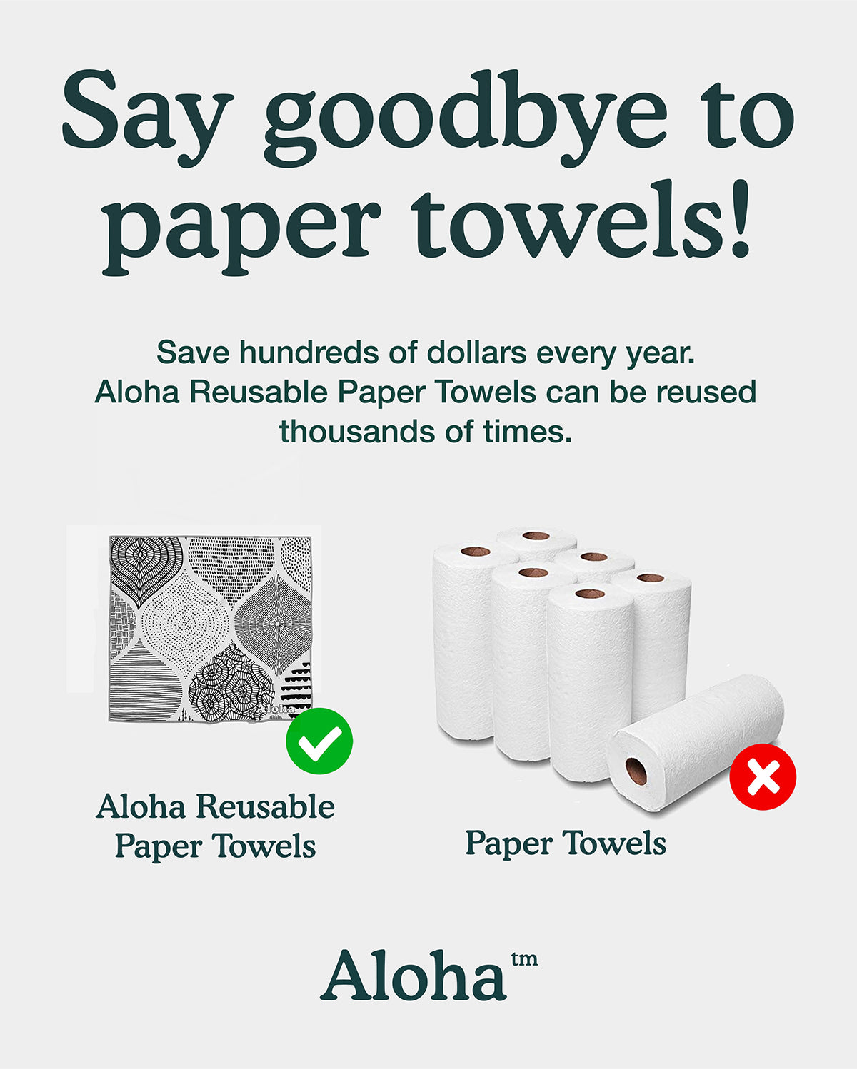 Save hundreds of dollars every year with Aloha reusable paper towels. Durable and designed to be reused thousands of times.