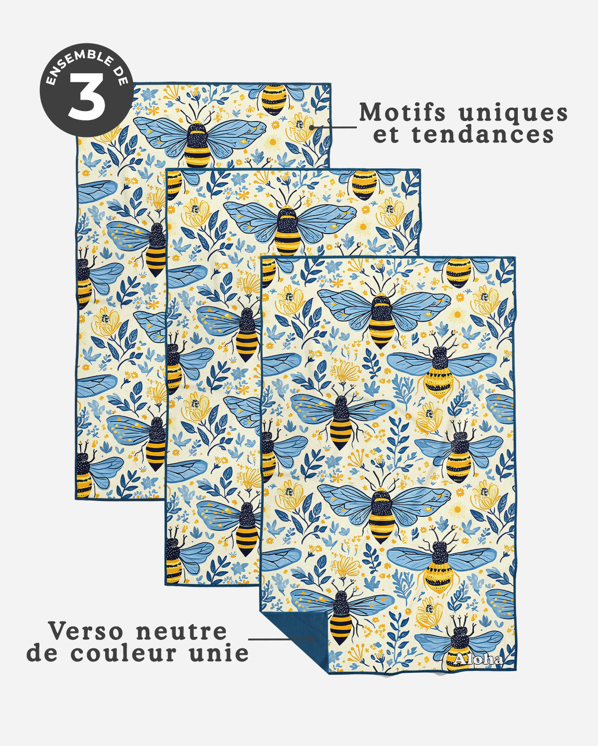 Linges à vaisselle Abeille | Ensemble de 3